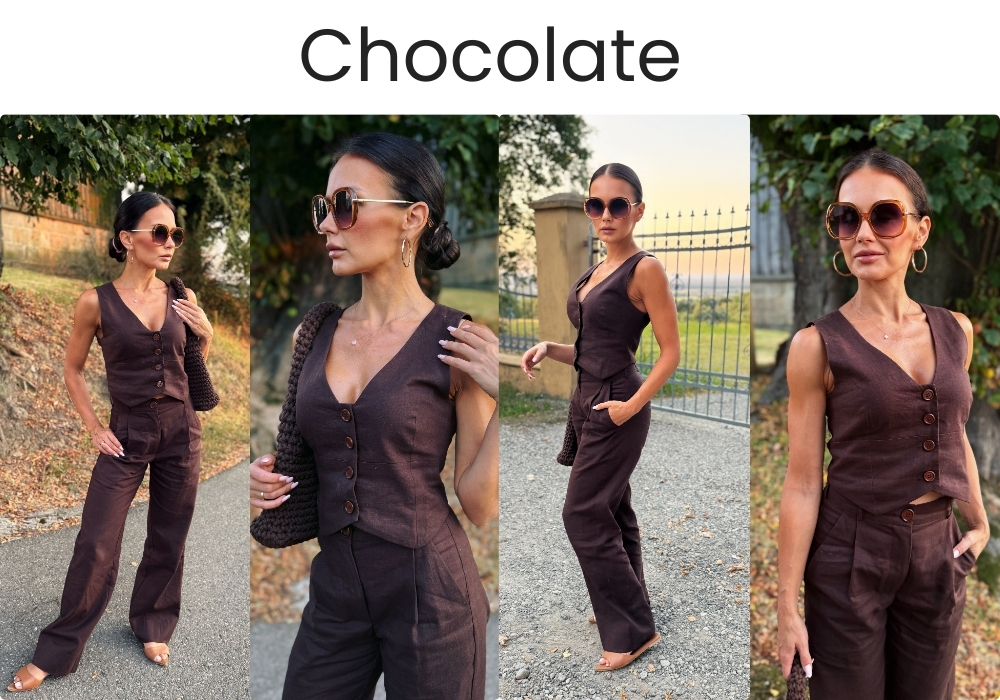 A deep, earthy shade for women who love natural tones and timeless elegance. In duet with a cream top or light shirt, it creates unique, harmonious combinations.