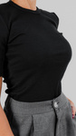 Fitted blouse with buff sleeves and caro neckline in beige color